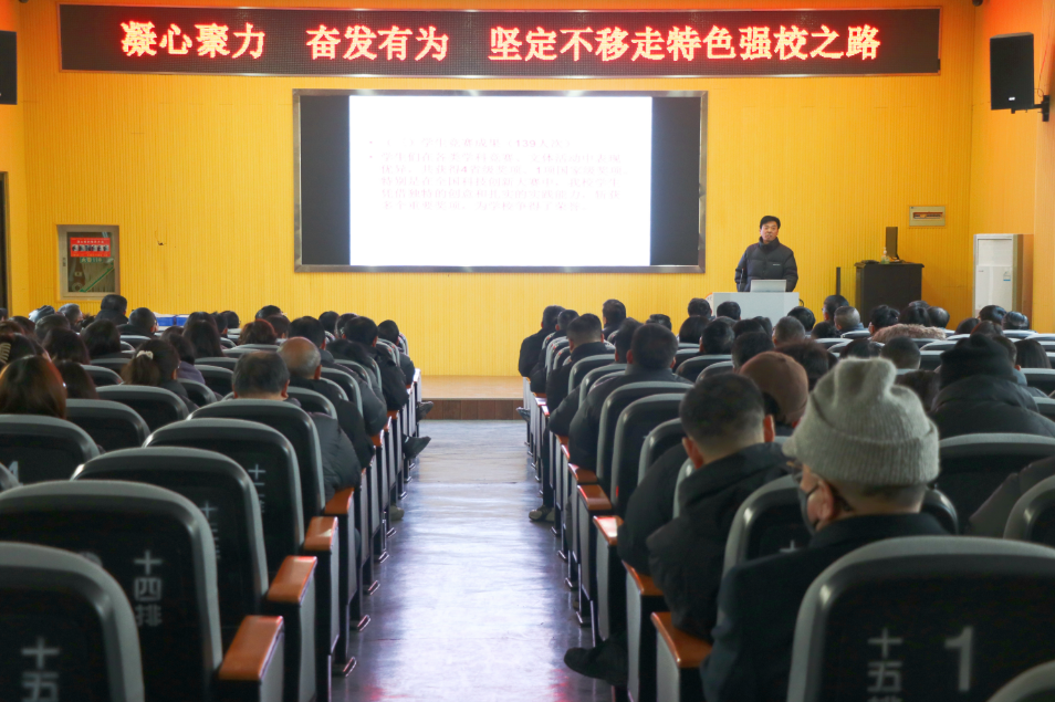 凝心聚力 奋发有为 坚定不移走特色强校之路 ——东台市富腾高级中学年会暨一届一次教代会顺利召开发表时间:2025-01-19 10:07 1月17日下午,东台市富腾高级中学礼堂内座无虚席,济济一堂,全校200多名教职员工聚集在这里隆重召开一年一度的学校年会暨一届一次教职工代表大会,学校校长、书记王志生向大会作学校工作报告,工会主席李旭东向教职工代表作工会工作报告,王晓秋董事长及学校领导班子成员全员参与。会后,全体教职员工还举行了盛大的联欢晚会,他们用激情与歌舞共同庆祝学校这一年来所取得的辉煌成就。